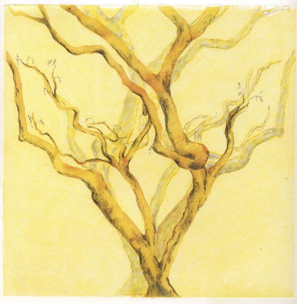 I even tried making some mono prints from my drawings. This is from the trees around Cleopatra’s Needle. It is a print and the ghost, all enhanced with colored pencil.
